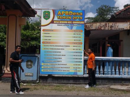 Tahun 2019 telah melaksanakan pembangunan desa dan pemberdayaan masyarakat. Pemerintah Desa Widoro dan mitra kerjanya yaitu BPD telah melaksanakan sinergisitas pengawasan pembagunan desa untuk bisa dimanfaatkan oleh seluruh masrakat Desa Widoro pada khususnya.