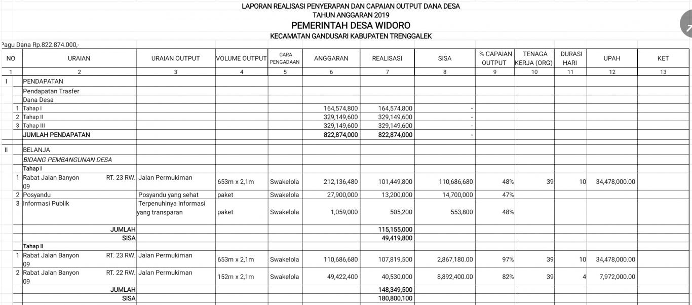 Laporan Pertanggungjawaban Realisasi Pelaksanaan Anggaran Pendapatan Dan Belanja Desa Widoro Tahun Anggaran 2019