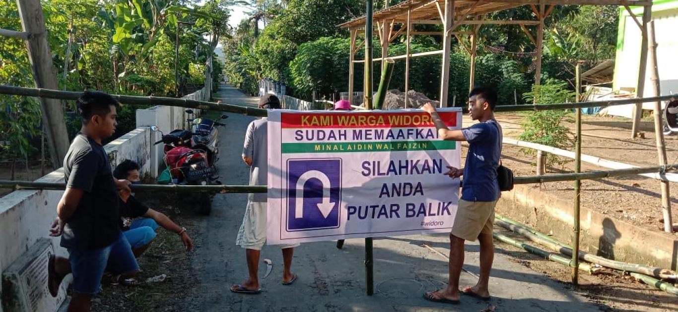 Penutupan jalan ini kami laksanakan sampai hari raya ke lima,. Semoga usaha dan ikhtiar kita memutus penyebaran covid-19 dan menjaga keamanan dan ketertiban masyarakat dapat terwujud. Harapan kita bersama wabah ini segera berlalu ungkapan Wakil Ketua BPD Widoro Danni Rahman Habibi.