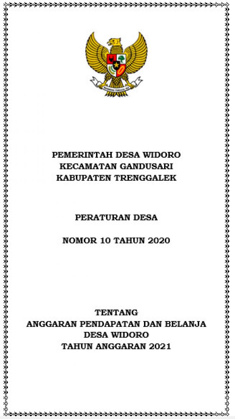 Perdes Nomor 10 Tahun 2020 Tentang Anggaran Pendapatan dan Belanja Desa Widoro TA 2021