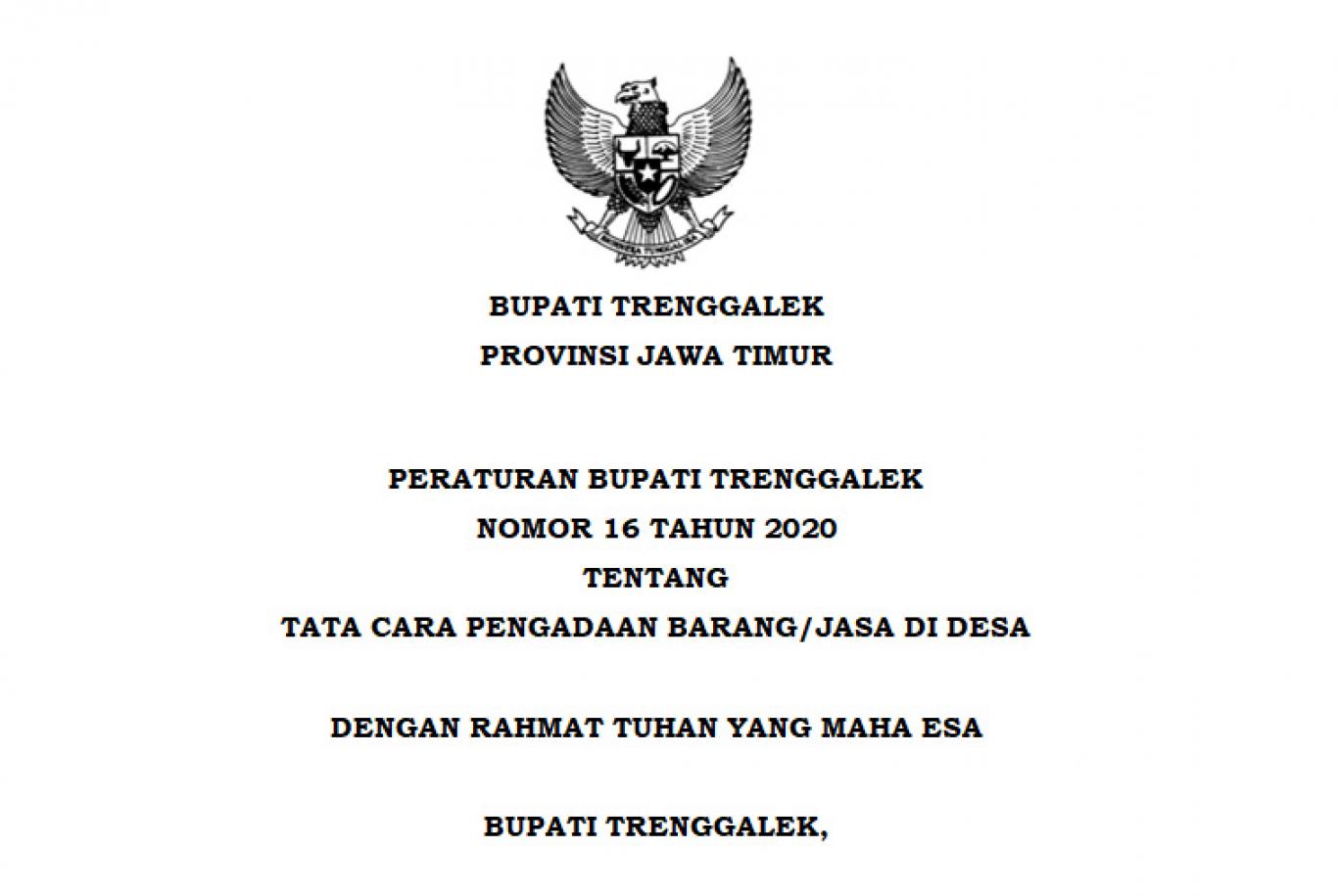 PERBUP 16 TAHUN 2020 TENTANG TATA CARA PENGADAAN BARANG DAN JASA DI DESA