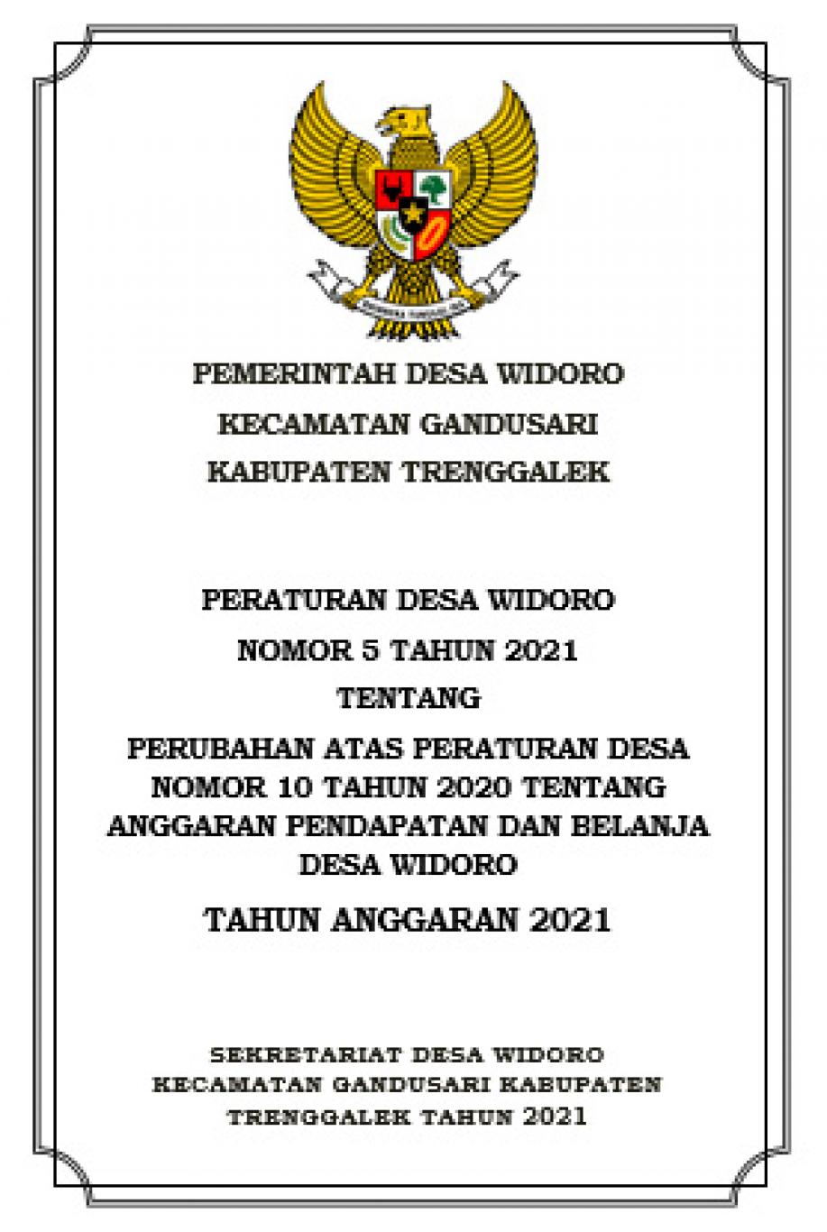 PERDES NOMOR 5 TAHUN 2021 TENTANG P-APBDES DESA WIDORO TA. 2021