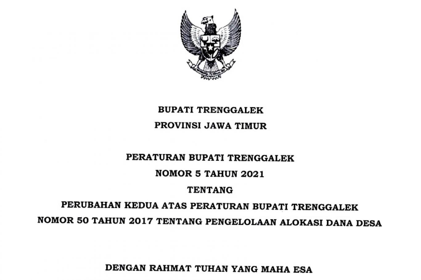 PERBUP TRENGGALEK NOMOR 5 TAHUN 2021 TENTANG ADD (ALOKASI DANA DESA)